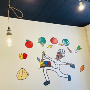納屋橋カレーパンのイートインスペースには、スタッフ