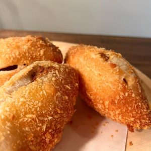 当店では油で揚げる際に生地が破け中身が飛び出してし